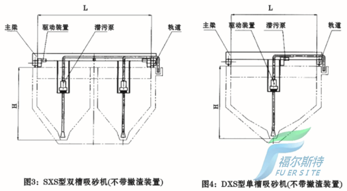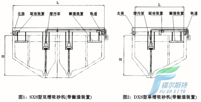 XS型系列吸砂機如圖所示,由主梁、驅動裝置、潛污泵、撇渣裝置、軌道和控制箱組成。