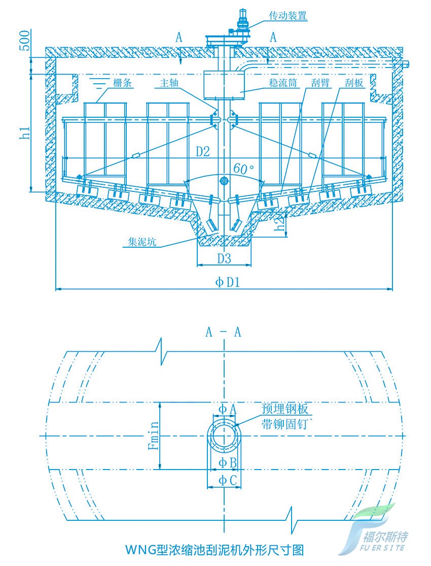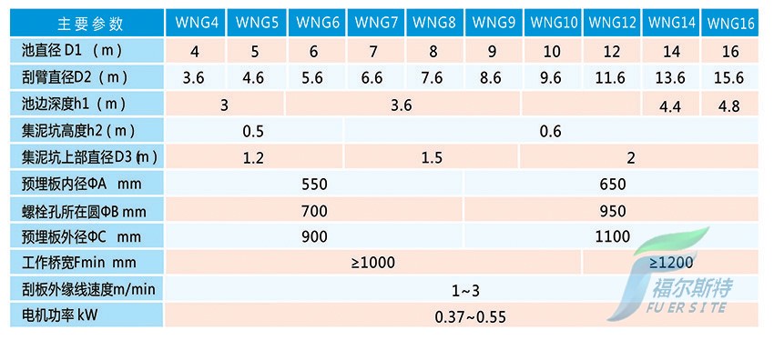 WNG型濃縮池刮泥機用于污水處理廠重力式污泥濃縮池,將濃縮污泥刮集至池底中心集泥坑,以便進一步作污泥脫水處理。